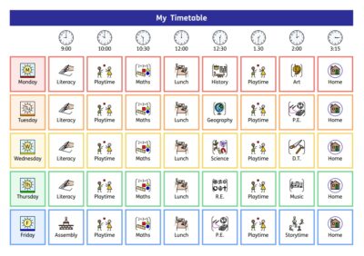 One way we can lighten the load is through dual coding, which combines words and visuals, helping children process information. A good example of this is the visual timetable which enables students to understand what’s coming next. Younger children can benefit from a now/next board made with simple illustrations such as Widgit Symbols to show that story time is followed by outdoor play. For older students, a full subject timetable with symbols alongside written words helps to map out their day.