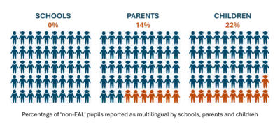 This is not just a primary school problem. Previous research has identified similar issues of linguistic representation in secondary schools (Liggins, 2021), and even in the national census. This highlights the need to better capture children’s linguistic diversity by using multiple and more nuanced sources of information.